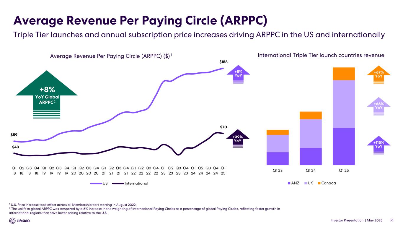 Investor Presentation | May 2025 Paying Circles by geography (000s) Paying Circles $140 $1398 +42% YoY$38 +42% YoYInternational Triple Tier launch countries Paying Circles +21% YoY +62% YoY +23% YoY +33% YoY +24% YoY 35 Note: Numbers may not add or recalculate due to rounding. Q1’25 year over year growth of 26%, while raising prices and improving customer value UK & ANZ Legacy price increases 529 550 605 647 668 665 698 708 737 804 895 991 1,044 1,117 1,180 1,162 1,203 1,233 1,300 1,327 1,390 1,468 1,579 1,627 1,718 157 159 171 180 183 169 171 169 166 186 204 227 243 275 310 332 364 396 446 474 508 562 610 632 678 Q1 19 Q2 19 Q3 19 Q4 19 Q1 20 Q2 20 Q3 20 Q4 20 Q1 21 Q2 21 Q3 21 Q4 21 Q1 22 Q2 22 Q3 22 Q4 22 Q1 23 Q2 23 Q3 23 Q4 23 Q1 24 Q2 24 Q3 24 Q4 24 Q1 25 US International Q1 22 Q2 22 Q3 22 Q4 22 Q1 23 Q2 23 Q3 23 Q4 23 Q1 24 Q2 24 Q3 24 Q4 24 Q1 25 ANZ UK Canada