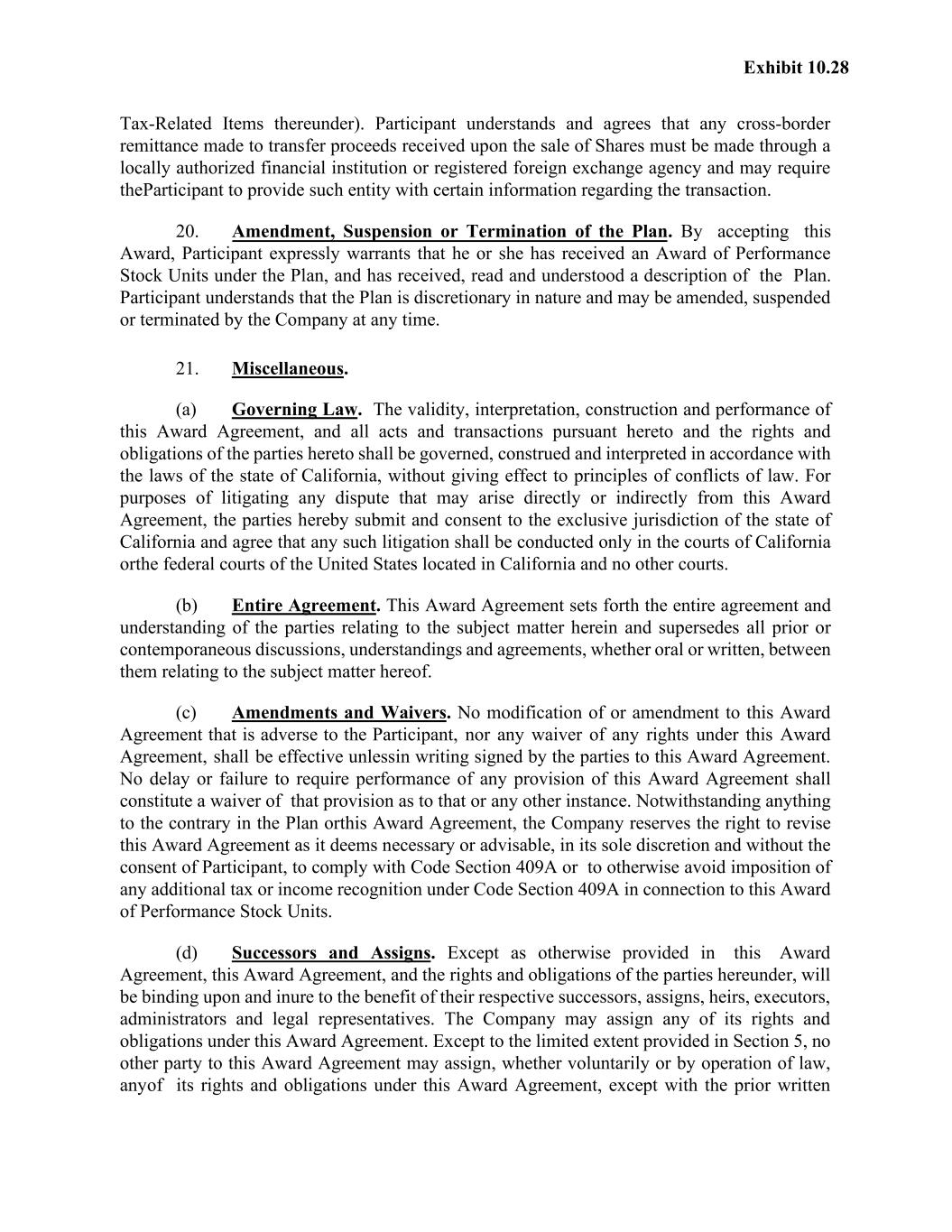 | 10.2+* | | | | | | 10-12G/A | | 000-56424 | | July 5, 2022 | | 10.2 |